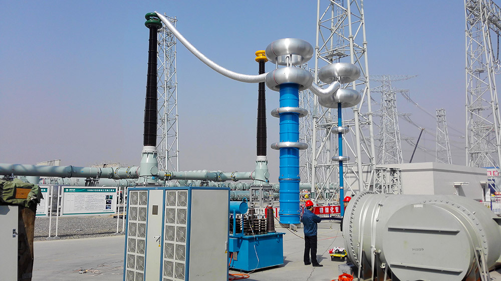 蒙東電科院蒙西1000kV變電站耐壓試驗(yàn)現(xiàn)場(chǎng)