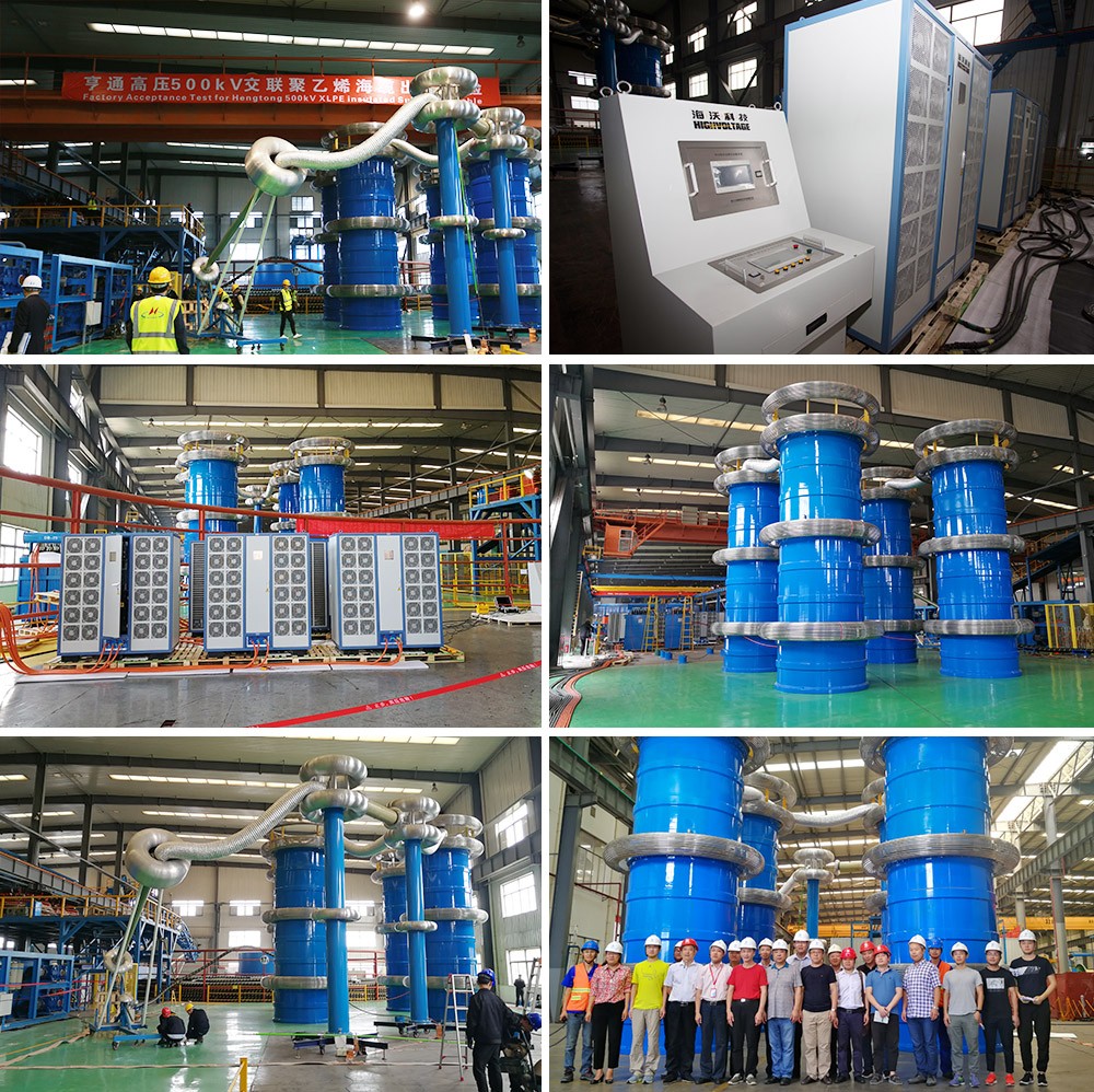 ○ 2018年3月、4月、9月、10月在海纜廠家完成了兩根500kV/18.2km海底電纜的半成品及成品出廠交流耐壓試驗(yàn);試驗(yàn)電壓580kV,高壓電流290A,系統(tǒng)品質(zhì)因素>160。